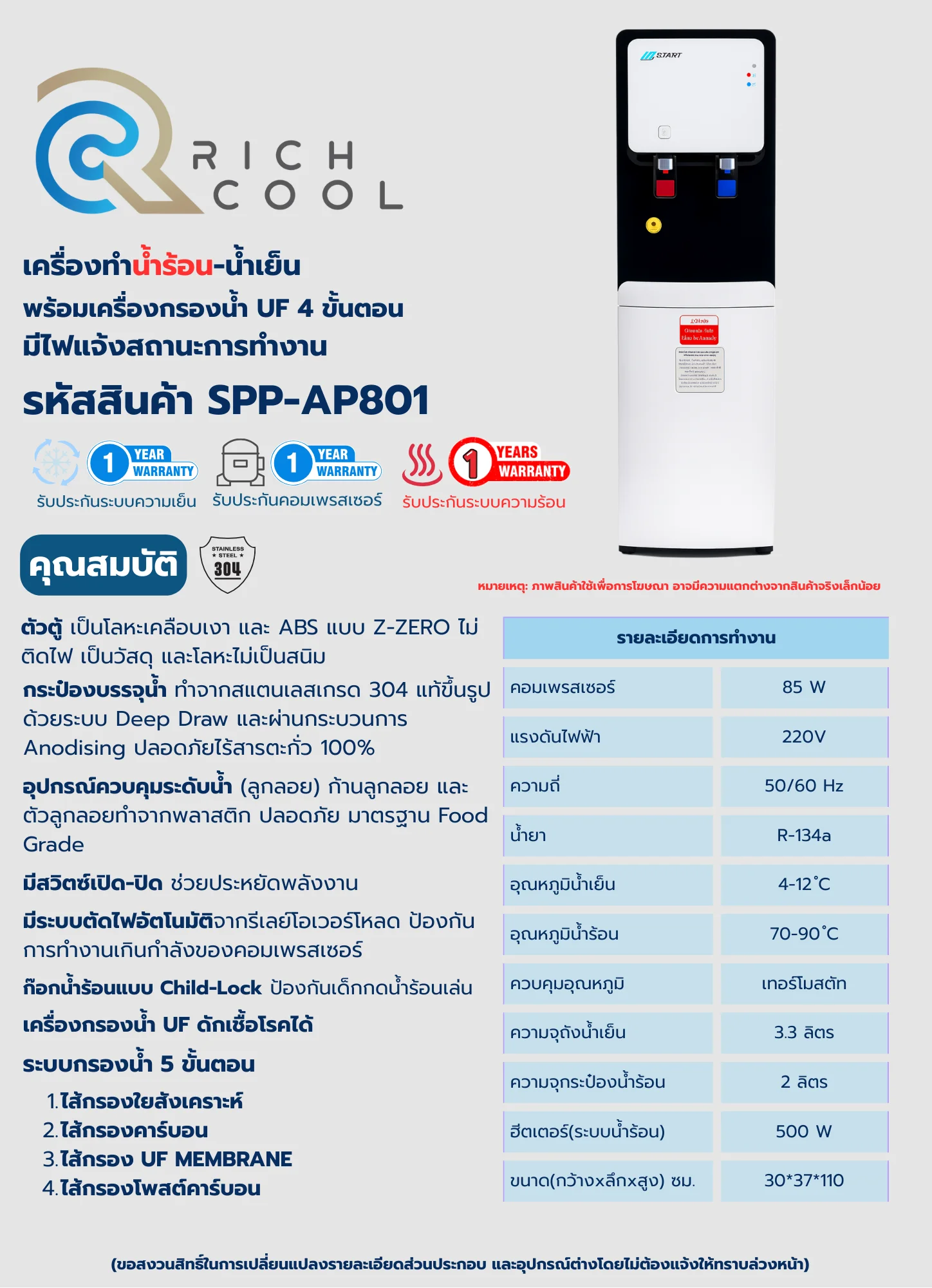 | กำลังไฟน้ำเย็น | น้ำเย็น 85 W |