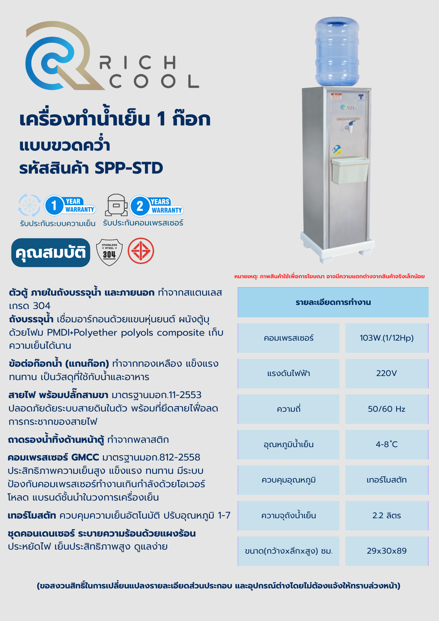 เครื่องกดน้ำเย็น แบบขวดคว่ำ 1 ก๊อก สแตนเลส รุ่น SPP-STD