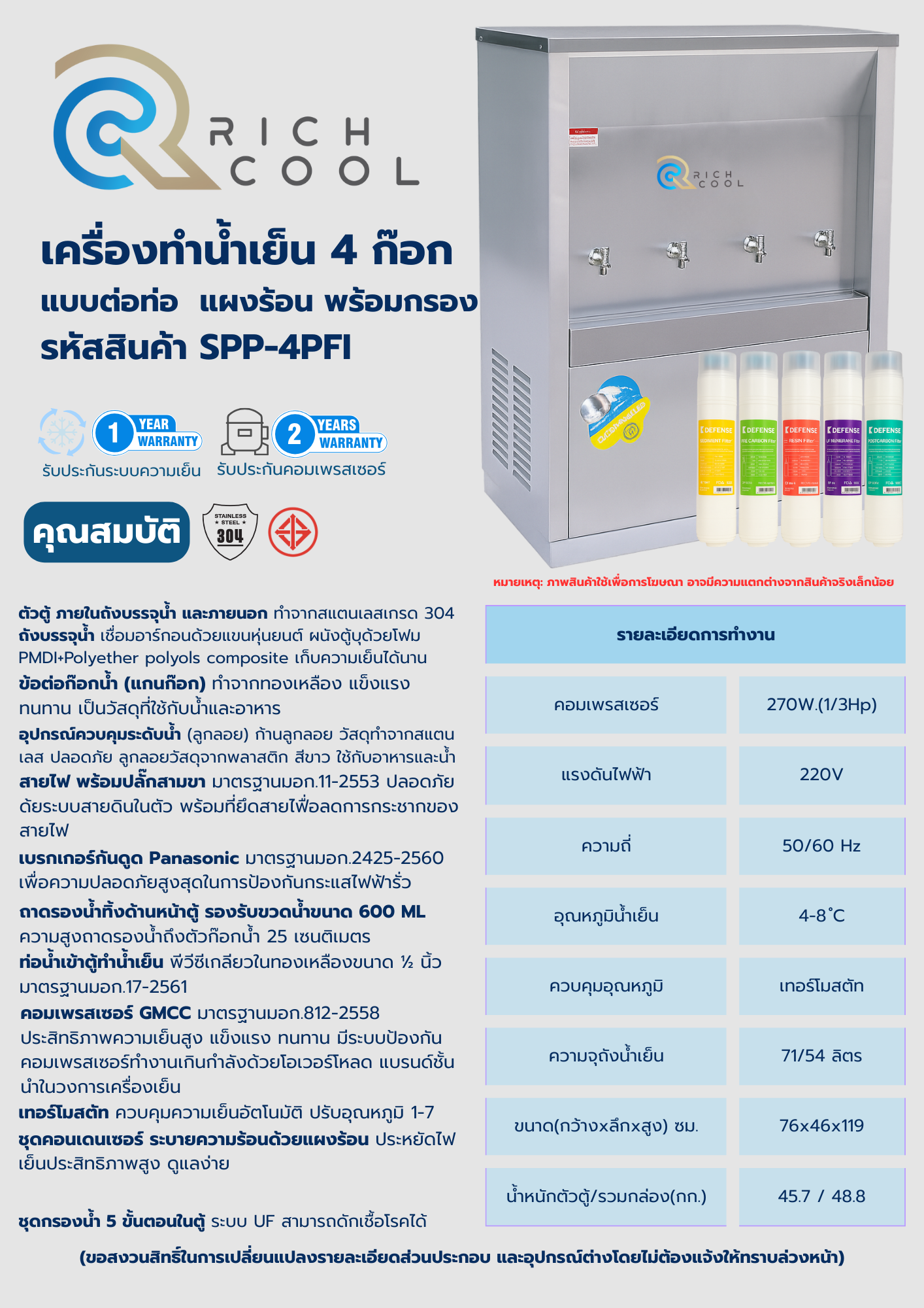 | ระบบกรองน้ำ | 5 ขั้นตอนระบบ UF |