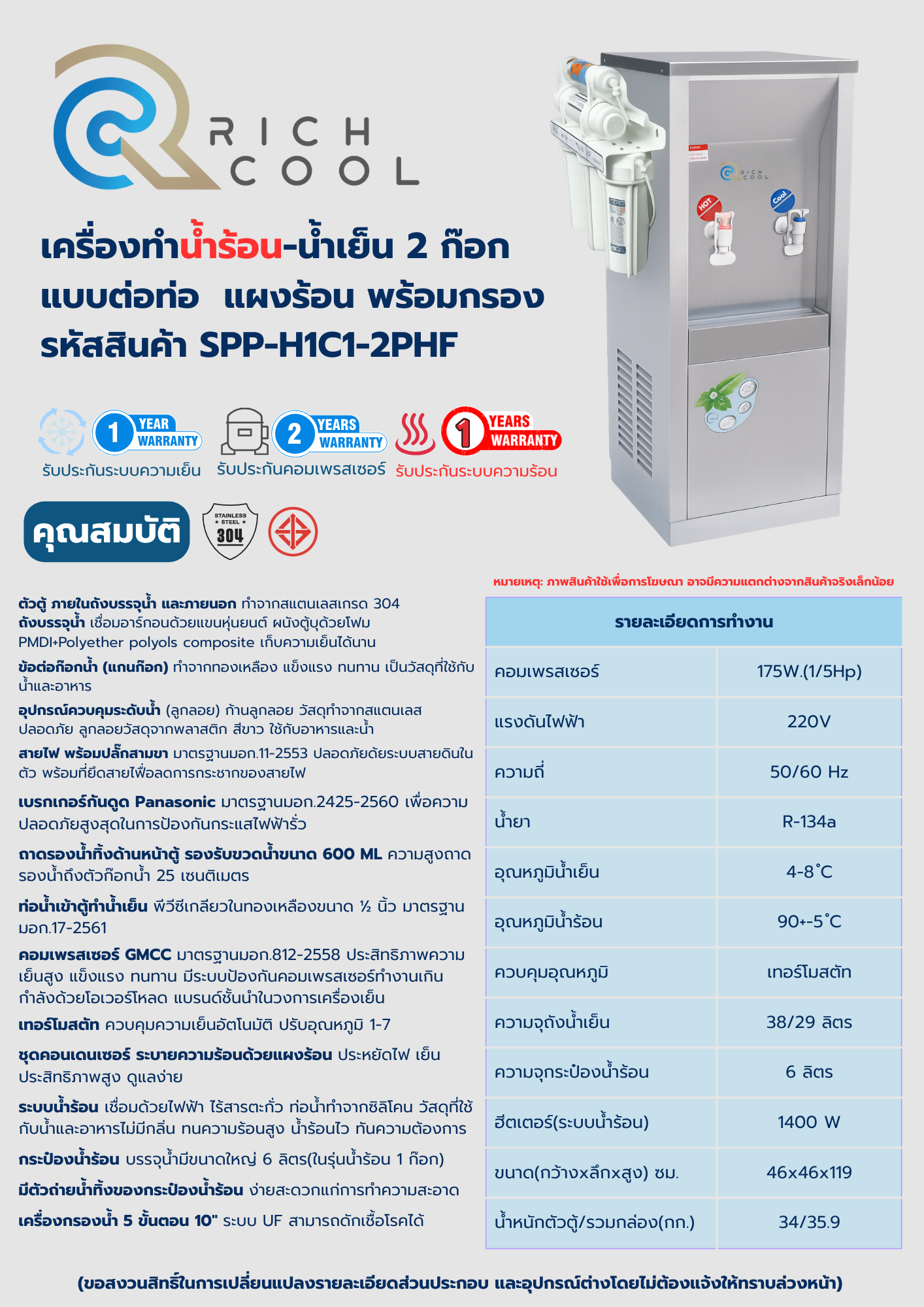 | ฮีตเตอร์(ระบบน้ำร้อน) | 1400 W |
