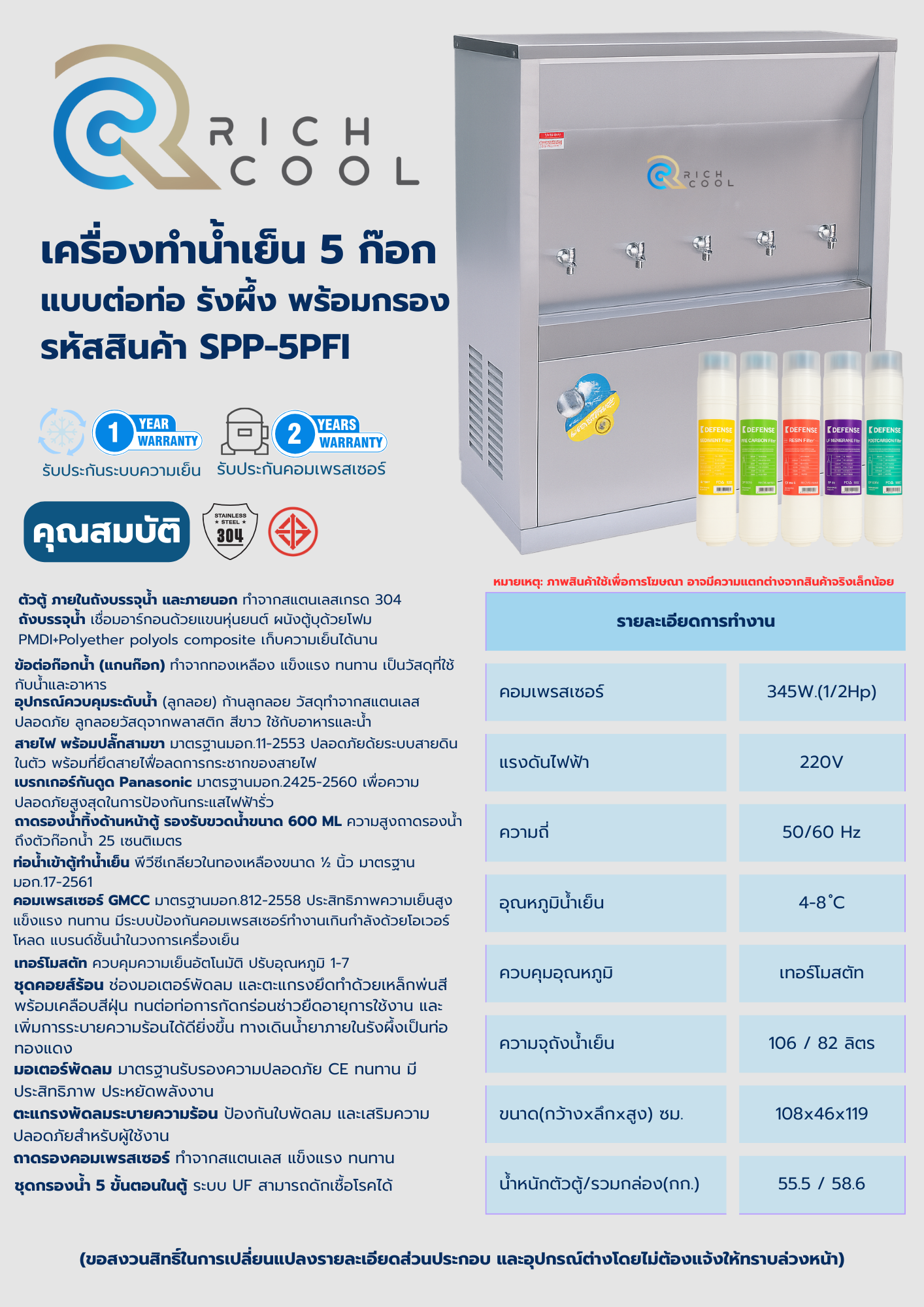 | ระบบกรองน้ำ | 5 ขั้นตอนระบบ UF |
