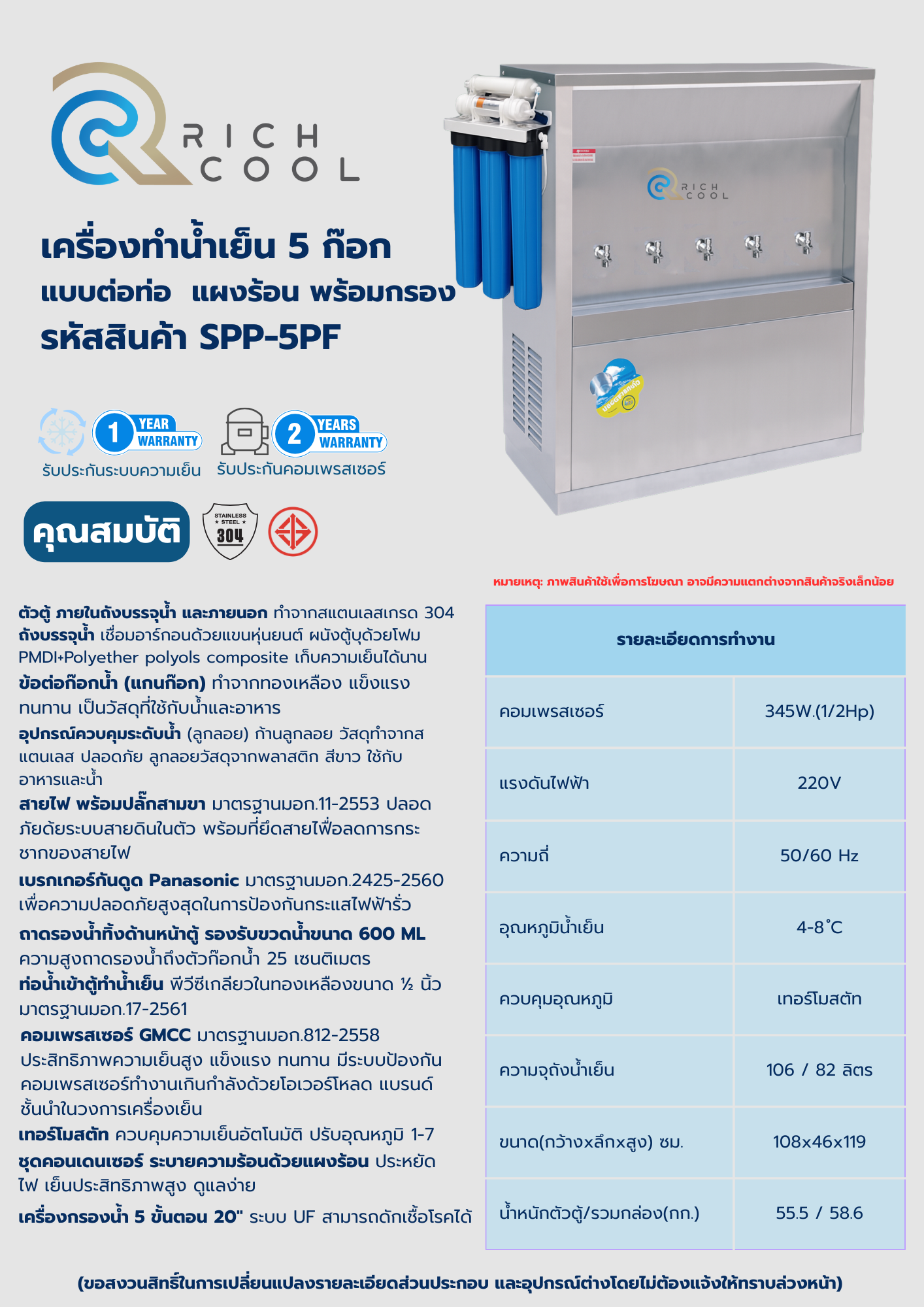 เครื่องทำน้ำเย็น 5 ก๊อก พร้อมเครื่องกรองน้ำ 5 ขั้นตอน รุ่น SPP-5PF