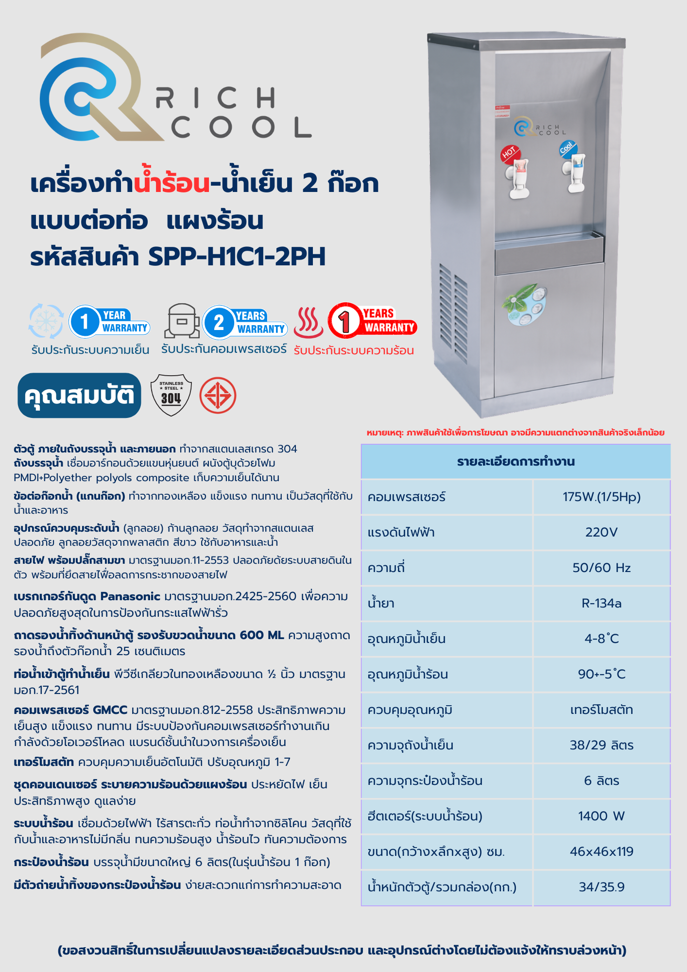 | ฮีตเตอร์(ระบบน้ำร้อน) | 1400 W |