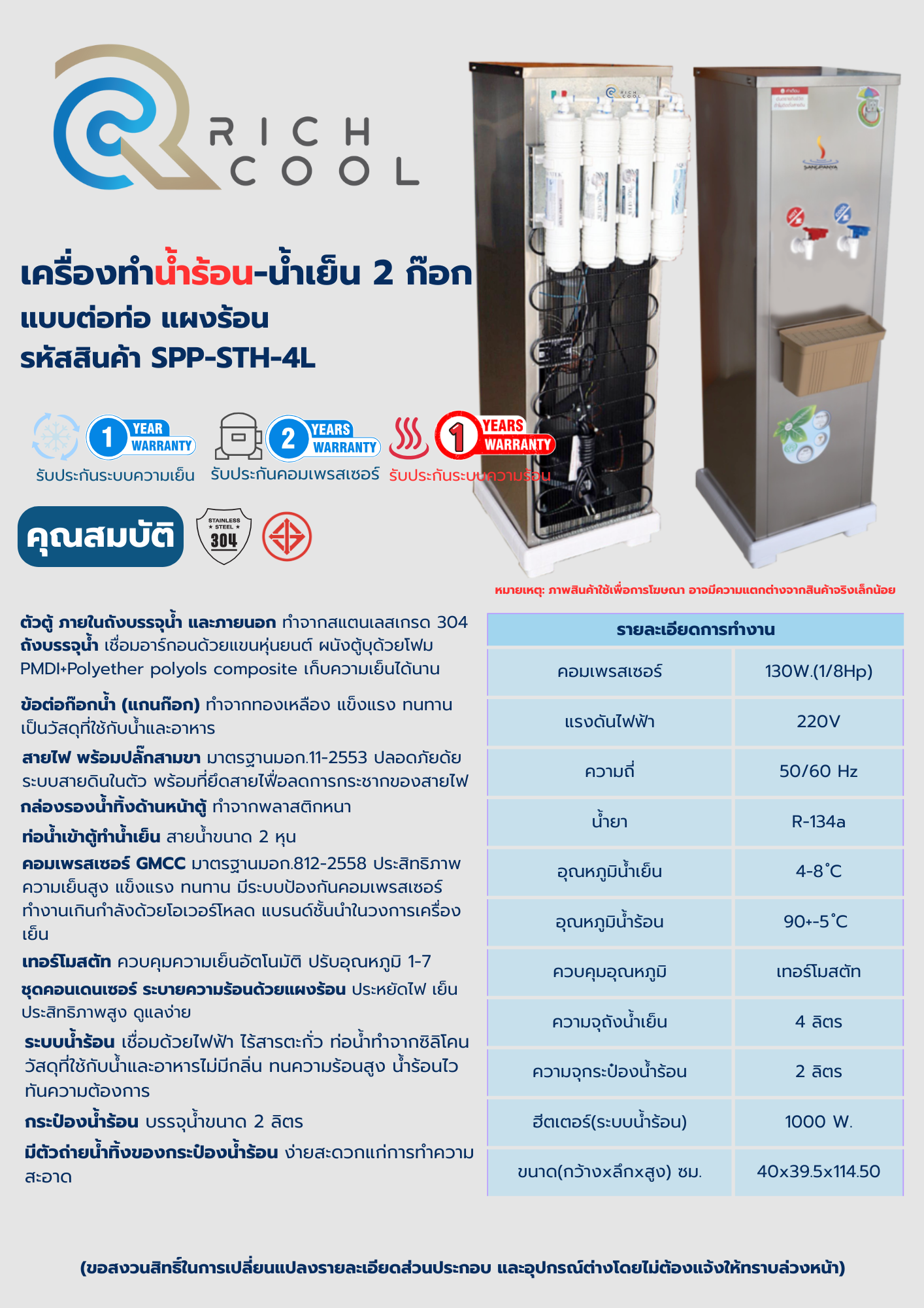 | อุณหภูมิน้ำเย็น | 4-8 องศา |
